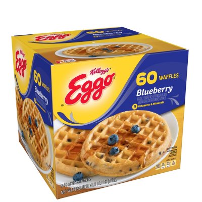 Kellogg's® Eggo® Blueberry Waffles - SmartLabel™ Kellogg's® Eggo® Blueberry Waffles, Nutrition, Ingredients, Allergens, Features &, Benefits, Company, Brand, & Sustainability, 180, Calories, 1.5 g, Sat Fat, 360 mg, Sodium, 6 g, Sugar, Nutrition Facts, Servings Per Container 12, Serving Size 2 Waffles (70 g)