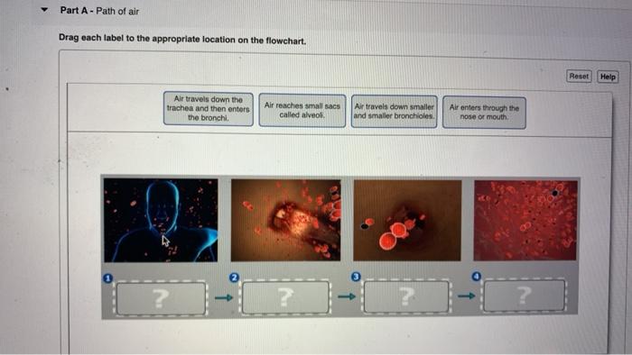 Drag each label to the appropriate location on the flowchart Drag each label to the appropriate location on the flowchart. Drag each label to the appropriate location on the flowchart. Drag each label to the appropriate location on the flowchart. a. ResetHelp Carbon dioxide diffuses into a capillary. d. Carbon dioxide diffuses into a capillary. c. Air exits through nose or mouth. (Get Answer) - In this activity, you will follow carbon dioxide on its ... BioFlix Activity: Gas Exchange -- Oxygen Transport Drag each label to the appropriate location on the flowchart. 4 of 10 Reset Help Oxygen is carried through blood Oxygen diffuses from the alveoliinta Oxygen ditluses from the blood to the body's...
