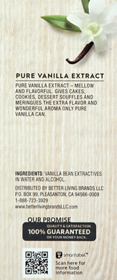 McCormick® Pure Vanilla Extract | McCormick Nutritional Information This product has no significant nutritional value. Ingredients Vanilla Bean Extractives in Water, and Alcohol. Allergen Statement UPC Code (Size) 52100070865 (1.00oz) 52100071039 (2.00oz) 52100071060 (4.00oz) 00052100030210 (8oz) 52100014593 (16fl oz) CREATE YOUR FLAVOR PROFILE!