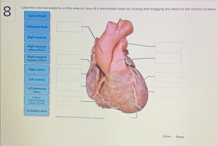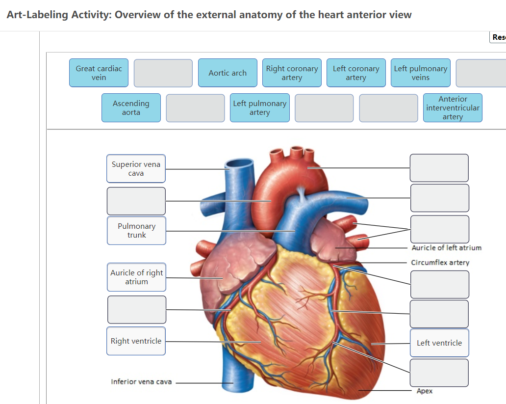 Blausen 0451 - Anterior view of the heart - English labels "Blausen 0451 - Anterior view of the heart - English labels " at AnatomyTOOL.org by Blausen Medical Communications, Inc., license: Creative Commons ... Label the heart - Science Learning Hub Jun 16, 2017 ... In this interactive, you can label parts of the human heart. Drag and drop the text labels onto the boxes next to the diagram. Selecting or ... The Heart - Anatomy and Physiology II - Lumen Learning Figure 8. This anterior view of the heart shows the four chambers, the major vessels and their early branches, as well as the valves. The presence of the ...