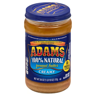 Adams® All Natural Peanut Butter | Home Adams ® Natural Peanut Butter. Learn more. Adams® 100% Natural Dark Roast Creamy Peanut Butter. ... Nutritional Information . Product Name. Select a format. Select a retailer below to buy online. Baking Family Enewsletter. Newsletter Sign-Up Confirmation.