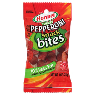 Calories in Hormel Turkey Pepperoni 70% Less Fat and ... - FatSecret Hormel Turkey Pepperoni 70% Less Fat Nutrition Facts Serving Size 17 slices (30 g) Amount Per Serving Calories 70 % Daily Values* Total Fat 4.00g 5% Saturated Fat 1.500g 8% Trans Fat 0.000g Cholesterol 35mg 12% Sodium 570mg 25% Total Carbohydrate 0.00g 0% Dietary Fiber 0.0g 0% Sugars 0.00g Includes 0.00g Added Sugars 0% Protein 9.00g Vitamin D 0mcg Calories in Hormel Turkey Pepperoni | CalorieKing How many calories in Hormel Turkey Pepperoni 70 Calories Quantity serving (1.1 oz) Serving Add To Compare 0/8 Nutrition Facts Calorie Burn Time How long would it take to burn off 70 Calories of Hormel Turkey Pepperoni? Swimming 6 minutes Jogging 8 minutes Cycling 11 minutes Walking 19 minutes